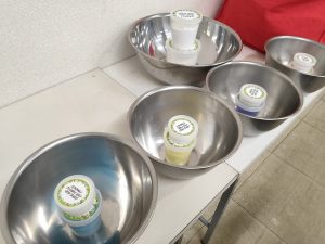 クイズの中でお店で購入した商品の容器を再度お店に持ってきてもらうと、