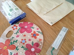 森林を人や動物にとって安心安全な場所に保つためには、木を切って間隔を整えなくてはならない(間伐)ということを、教えていただきました。その過程で間伐材が出るので、それを割り箸や、うちわ、ハンカチなど色々な形に変えて活用することでごみ減量や、リサイクル活動ができ環境保全にもつながるという事を知ることが出来ました。